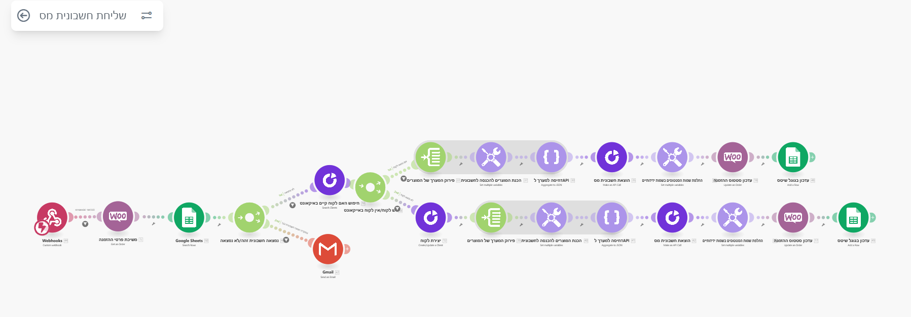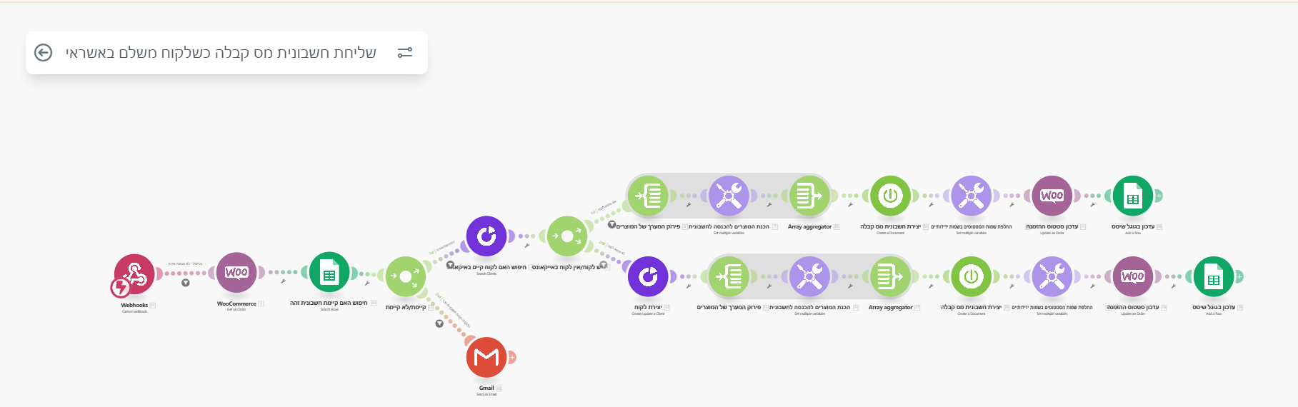 האוטומציה בודקת האם מדובר בלקוח חוזר או חדש, ולפי זה פותחת לקוח במערכת החשבוניות