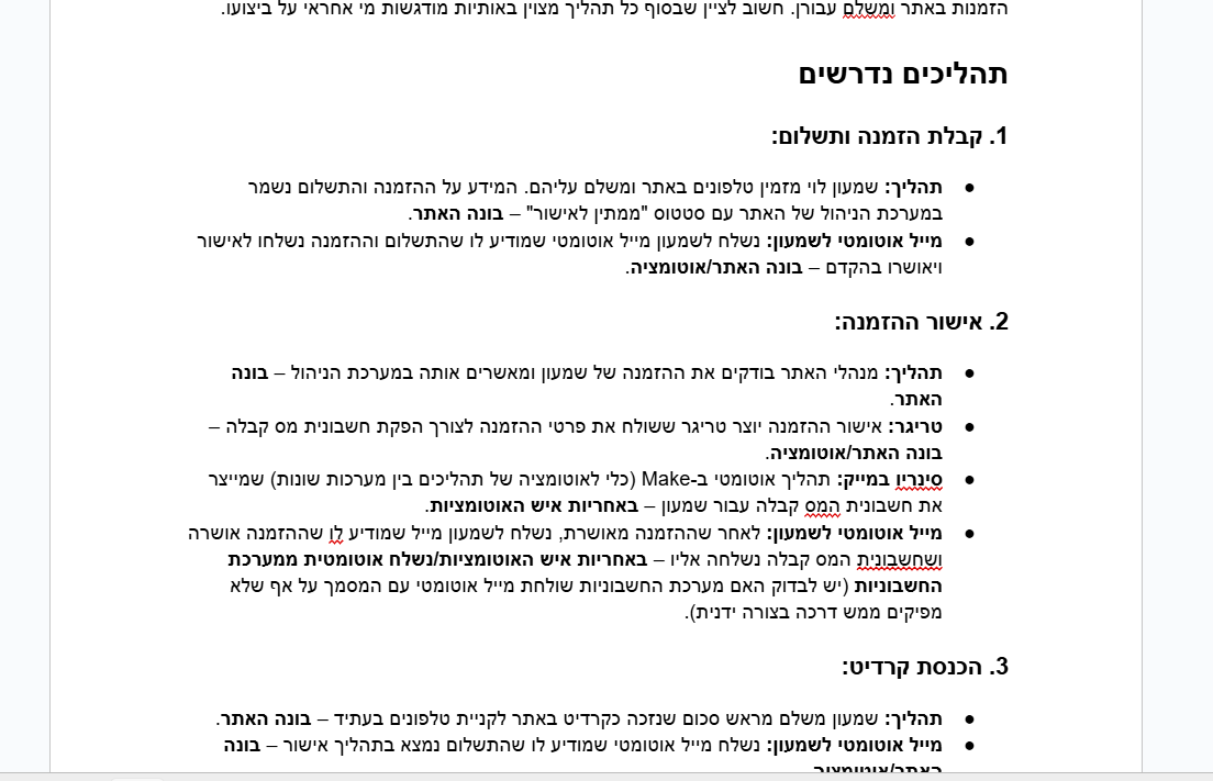 לאחר מכן בניתי מסמך אפיון, שכלל: